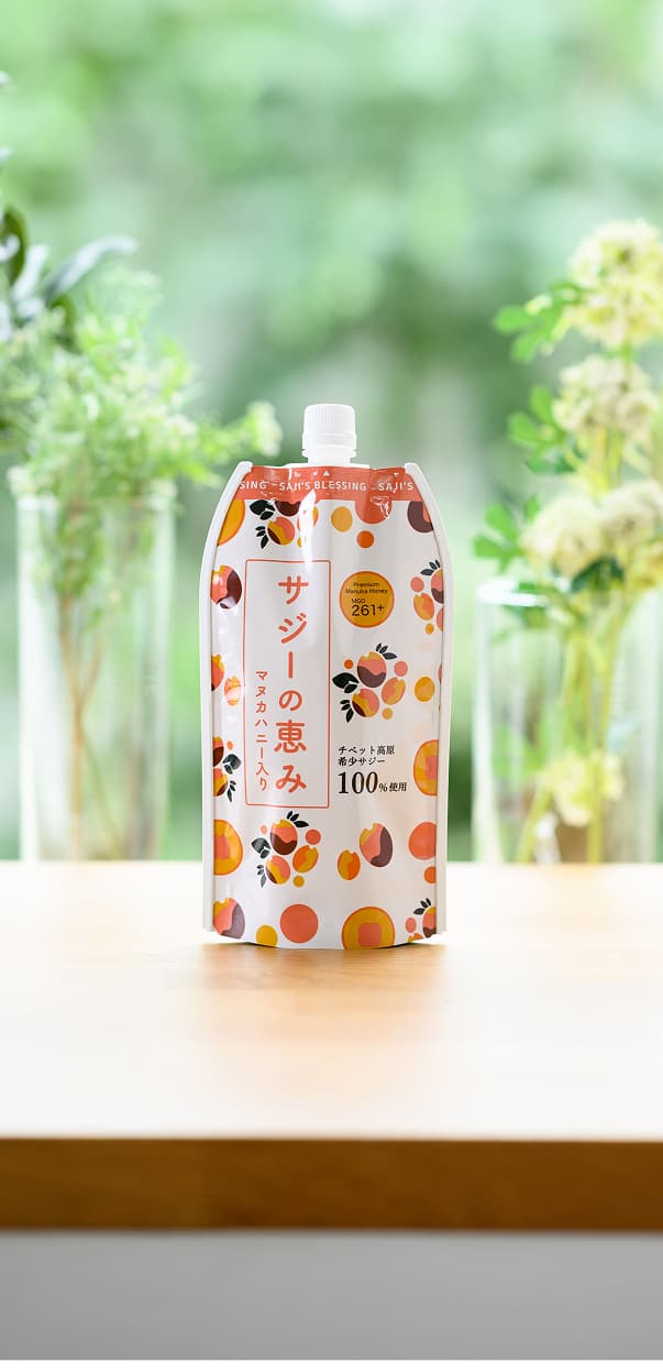 まるで天然シロップのような凝縮された濃厚な味わいのマヌカハニーで、サジーの癖のある酸味を調和。ニュージーランドの自然に育まれたマヌカハニーの中でも優れた抗菌成分を示したものを厳選したプレミアムマヌカハニーを100%使用。
